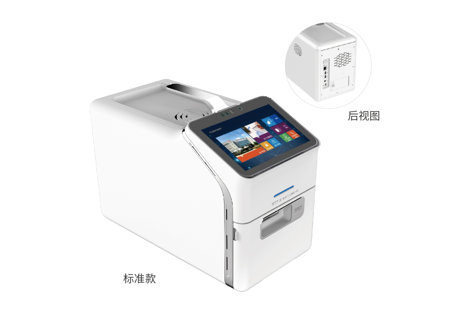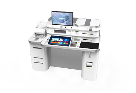制卡一体机是为智能化网点设计、研发的一款智能化服务终端设备。该设备采用高性能工控主机,功能模块配置齐全,整合即时制卡模块、刷卡/折模块、凭条打印模块、指纹仪等,以“客户自助+大堂经理引导方式”办理柜台所有业务,分流柜面压力,节约网点成本、实现客户服务体验提升,网点营销效率提升。